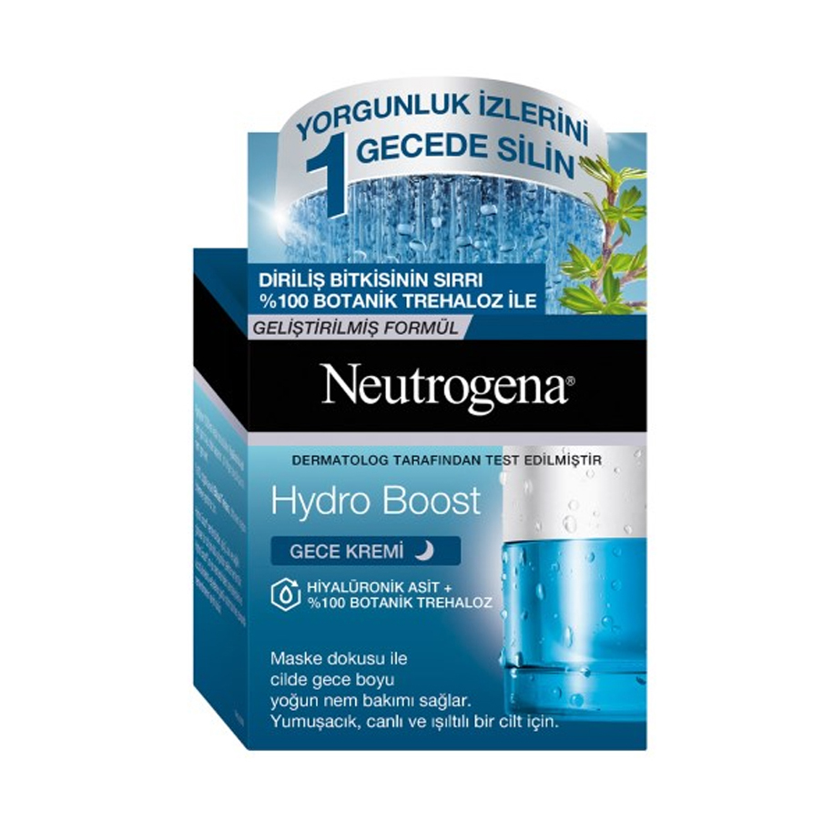 کرم شب رفع خستگی پوست نوتروژینا مدل Hydro Boost حجم 50 میل برای رفع آثار خستگی و پیری روی پوست تولید شده است. این محصول کم آبی پوست را در طول شب رفع کرده و حاوی میزان قابل توجهی هیالورونیک اسید در ترکیبات خود می باشد. با ایجاد یک لایه ی سبک و بدون چربی بر روی پوست ضمن مسدود نکردن منافذ، سبب صافی و انعطاف پذیری آن  خواهد شد. با آبرسانی بی وقفه ی پوست مراقبت ویژه از آن خواهد داشت و مقاومت پوست را در مقابل از دست دادن آب افزایش می دهد. از سد اپیدرم محافظت کرده و آن را تقویت می کند.